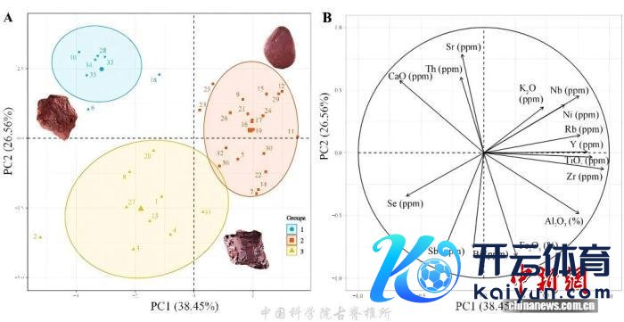 本次盘考分析分辨出的三类赭石及联系暗意图。中国科学院古脊椎所 供图