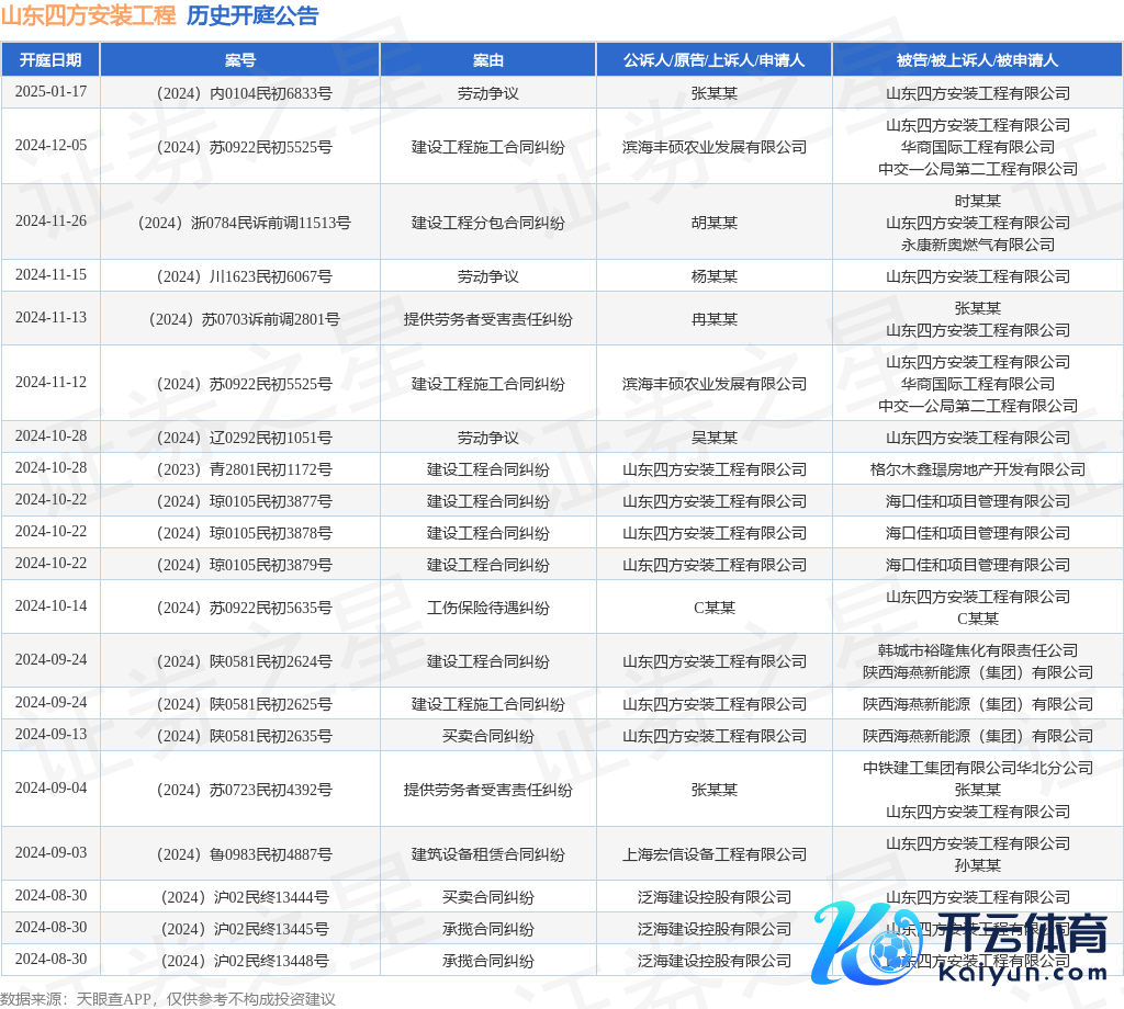 本站音讯云开体育,左证天眼查APP线路,近日公布了一则山东四方装配工程有限公司四肢被告/被上诉东谈主的开庭公告,介怀本体如下:
