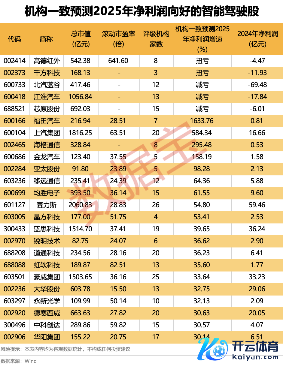 机构一致预测2025年净利润向好的智能驾驶股一览开yun体育网机构一致预测2025年净利润向好的智能驾驶股一览