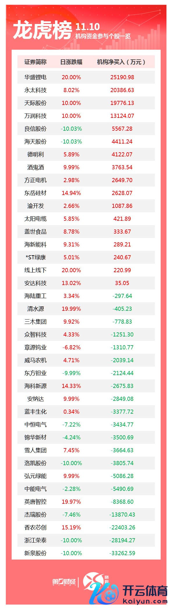 龙虎榜丨机构当天买入这17股云开体育,卖出新泉股份3.33亿元龙虎榜丨机构当天买入这17股,卖出新泉股份3.33亿元