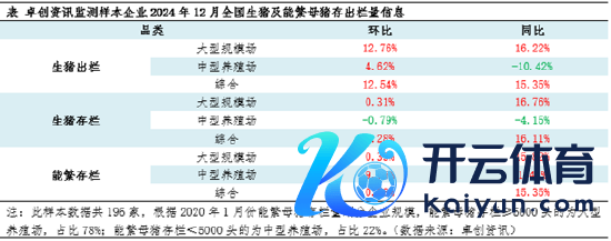 限度2024年12月末,卓创资讯监测196家样本企业能繁母猪存栏量为898.87万头,同比增幅15.35%。主要收成于生息端年内信心实足,积极引申产能。
