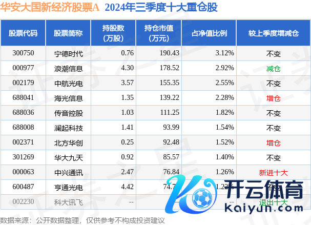 华安大国新经济股票A为股票型基金,笔据最新一期基金季报透露,该基金钞票成就:股票占净值比94.86%,债券占净值比0.33%,现款占净值比4.83%。基金十大重仓股如下:
