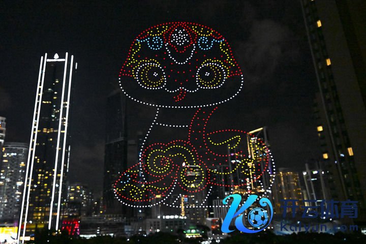 1月25日,在马来西亚吉隆坡举行的2025年“舒畅春节”全球入手典礼前,无东说念主机展示蛇年主题图案。新华社记者程一恒摄