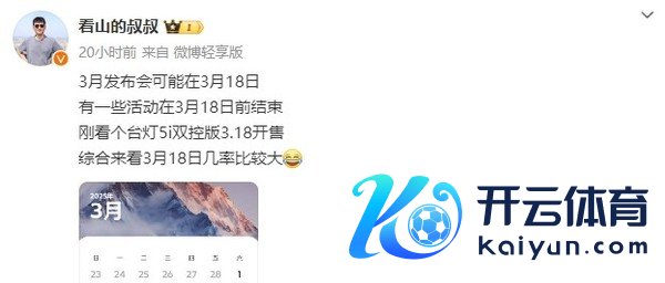 近日,稀有码博主瞻望称,华为3月发布会可能在3月18日。其分析称,有一些行径在3月18日前甩手,还有一个台灯居品在3月18日开售,详细来看,3月18日的几率相比大。另外,还有又名博主也爆料称,华为旗下搭载大尺寸外屏的Pocket 3将禁受新阵势筹办,新机有望在本月15-20号之间到来。由于第一位博主提到的18日就在第二位博主说的15-20日之间,因此这一日历的可能性也曾很大的。