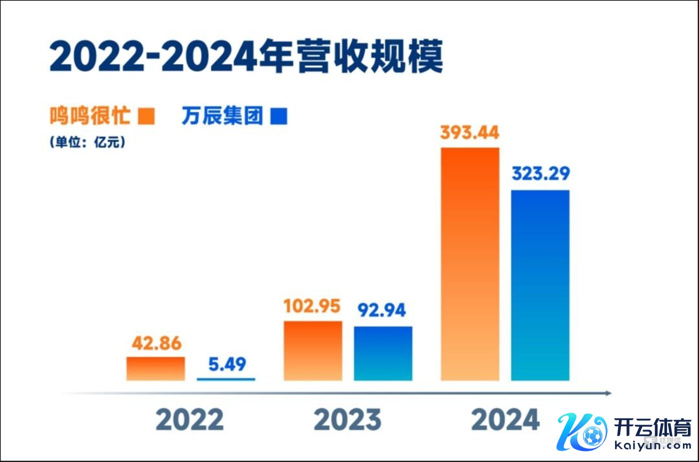 再看万辰集团,通过搭伙控股,昔日两年公司已毕向上式发展——总营收从2022年不到6亿元暴涨至2023年的93亿元;2024年同比增长247.86%至323亿元。