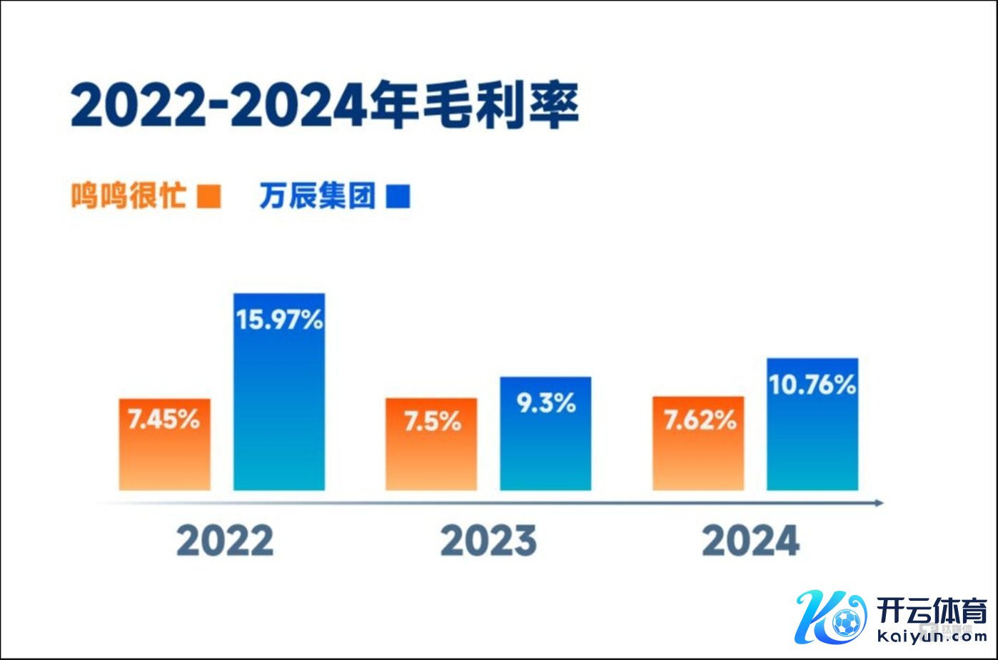 天然,这其中伴跟着阵痛。2023年万辰集团出现0.38亿元的阶段性失掉,尽管2024年扭亏为盈,但Wind数据高傲其当年举座净利率仅有1.87%,低于同期鸣鸣很忙2.11%的净利率。