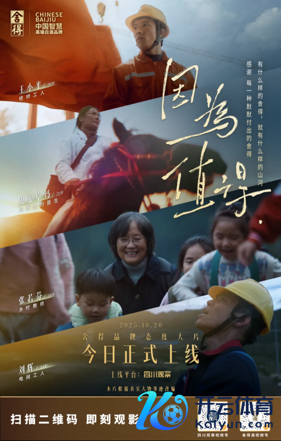 10月20日,舍得酒全新品牌精神大片《因为值得》登陆四川不雅察等媒体平台,以医疗、西席、基建、民生四大界限的果真东谈主物故事为载体开云体育,对其全新品牌精神“这个期间,需要舍得”进行了具象化抒发。